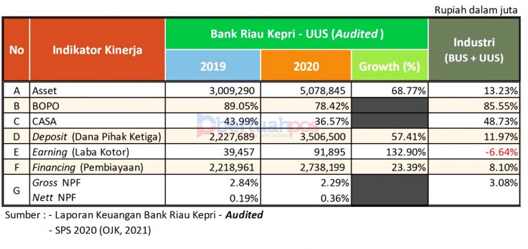 Bank Riau Kepri juga telah telah menyalurkan pembiayaan sebesar Rp2,73 triliun pada 2020, sedangkan di tahun sebelumnya hanya Rp2,21 triliun. Dia menambahkan, Bank Riau Kepri juga mengupayakan menjaga kualitas pembiayaan yakni dengan menurunkan angka NPF. Di mana pada 2020 lalu berhasil diminimalisir 2,24%, lebih rendah jika dibandingkan 2019 sebesar 2,84%.